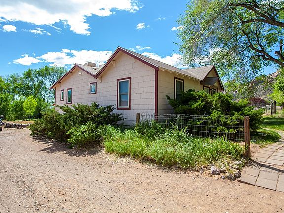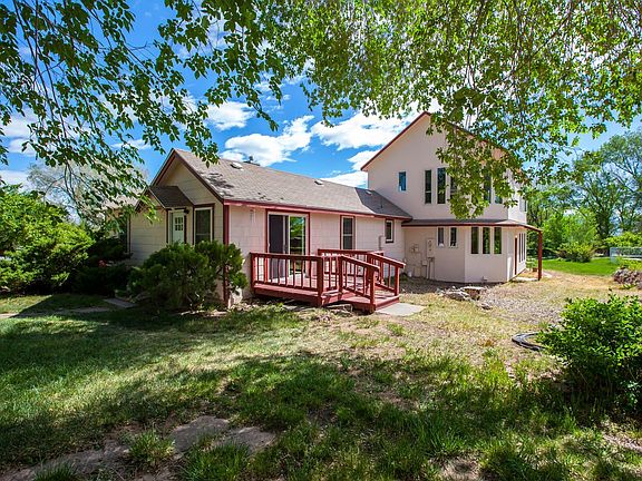 At the base of the Colorado National Monument on over two irrigated acres sits this dream! This property has it all...a mature orchard with apricot, apple, cherry, pear, plum, peach, & nectarine trees, an animal setup with small barn/shelter, and chicken coop, all in a completely fenced yard. The original home offers a good sized living room, two bedrooms, one full bathroom, and its own kitchen with new flooring that flows into the new addition of the home (2008) that has another large kitchen with new appliances and views out of every window, a family room, 3/4 bath, and a craft room. Enter the master bedroom with on-suite bathroom from the staircase and you are instantly surrounded by more of the new Anderson windows that have been upgraded throughout the home. Stunning is an understatement! Solar is owned and supplies the addition of the house. New exterior and interior paint.