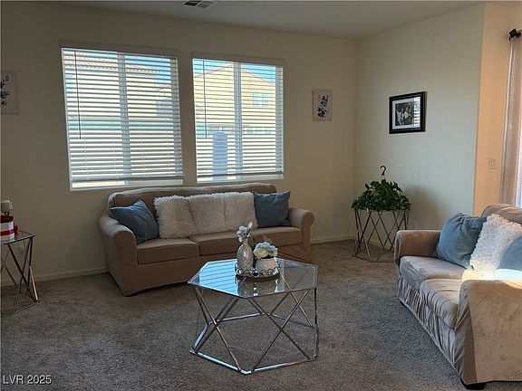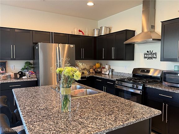 Welcome to this beautifully upgraded 3-bedroom, 2.5-bath home located in a desirable community in North Las Vegas.From the moment you arrive, you're greeted by a private courtyard and a stylish glass accent front door that sets the tone for the modern touches found throughout the home. Step into the upgraded kitchen where you'll find sleek stainless steel appliances, modern cabinetry, and stainless steel hardware that adds a touch of sophistication throughout the home. Boasting a spacious and functional layout, this home features a versatile loft—perfect for a home office, media room, or additional living space. The neutral interior palette provides a warm and inviting atmosphere, ready for your personal touch. Conveniently located near local amenities, schools, and parks. Don’t miss your opportunity to make this move-in ready gem your own!