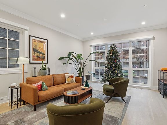 Gorgeous Roscoe Village Duplex Down with 4BR! Professionally designed with top of the line finishes and special attention to details with amazing craftsmanship. Enjoy the chef's kitchen with contemporary cabinets, quartz counter tops, a large island, and stainless steel appliances including a beverage center. Relax in the beautiful family room off of the kitchen with custom built in bookcases and a gorgeous fireplace. Family room leads to a private, covered terrace with a ceiling fan and 10ft folding windows/doors. Perfect space for grilling and entertaining! Many luxury finishes such as 8' doors, 7" wide plank flooring, and custom powered shades with remote. Live your best life in the lower level with high ceilings and radiant heat with 4 bedrooms and 2 baths. It boasts a spa like primary suite with an enormous walk in closet. The impressive primary bath has a double vanity, separate shower and free standing soaking tub, with stunning designer tiles and light fixtures. This home has amazing outdoor space that leads to terrace from family room, back deck and private garage roof deck. Garage parking is included in the price. Everything you are looking for in the heart of Roscoe Village. Walk to the el, grocery stores, boutiques and amazing restaurants.