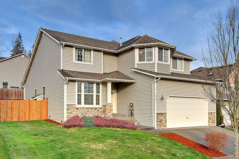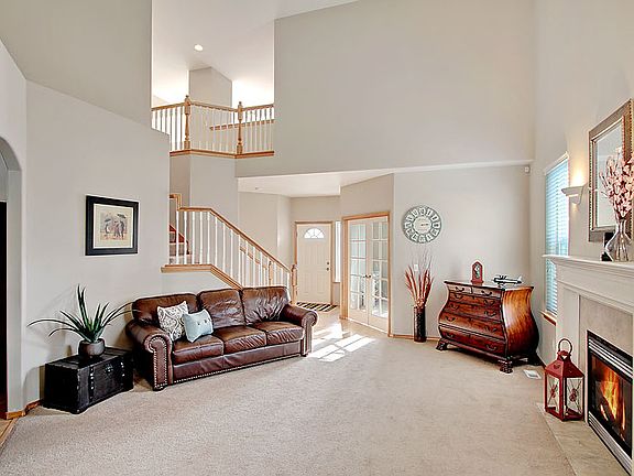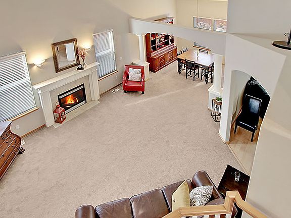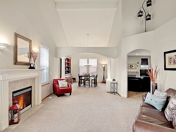 This home highlights an open & bright floor-plan w/ vaulted ceilings in the entry & formal living. W/ formal dining, dual fireplaces, family rm, den & laundry rm all located on the first floor. The kitchen features stainless steel appliances, high counter-tops & opens into the casual eating space. Sliding glass doors lead out to a 20 x 20 custom stamped cement patio. The master bedroom grand entry, 5-piece bath, large walk-in closet & vaulted ceilings are luxurious. Nothing left to be desired.