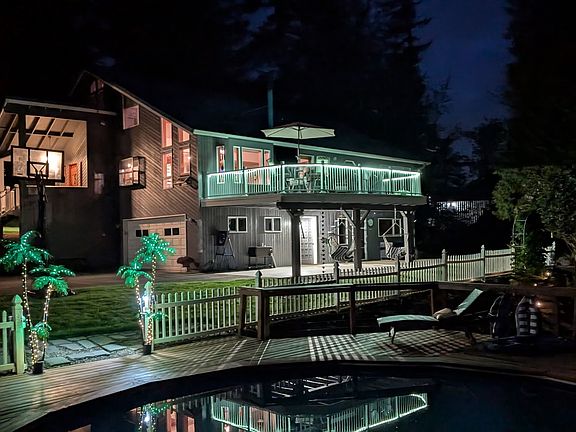 Tucked away in a serene and private setting, this one-of-a-kind custom-built house is a perfect blend of luxury, function, nature and entertainment. Featuring 4 spacious bedrooms, 3.5 bathrooms and an oversized office/bonus room that could be a 5th bedroom, this home offers ample space with an option for multi-generational living. The heart of the home is the well-appointed kitchen complete with stainless steel appliances, quartz countertops, a large island and plenty of storage. Enjoy both a cozy living room and a formal living room, plus a large loft above. The owners' suite features his-and-her closets with a nook between, a soaking tub, soapstone countertops, and a walk-in shower. On the ground level you'll find a private attached guest quarters, perfectly suited for extended family or guests. With a dedicated separate entrance, full kitchen, living and dining area, bedroom, and full bathroom, this space provides true independence and privacy. An abundance of outdoor amenities make this property truly unique. Store your toys or work on projects in the spacious 20’x60’ insulated shop with concrete floors and 220 power. In the back of the shop is a room designed for auto painting and furniture restoration. The front yard features a babbling 4-tier water feature with koi, ponds, waterfalls and lush landscaping. A large deck off the main living space overlooks the backyard and pool. Cool off on those hot summer days in the oversized above-ground pool with surrounding deck. Gardeners will delight in the greenhouse, raised beds and a variety of fruit and berry trees. 3 acres of mature forest include meandering ATV/walking trails and a secret 10’x15’ tree house. 11,000 KW generator included. This truly special property offers a perfect blend of comfortable indoor living, outdoor entertainment and natural beauty. Don’t be afraid to book an evening showing on this one. The ambiance lighting is stunning as the sun starts to set!