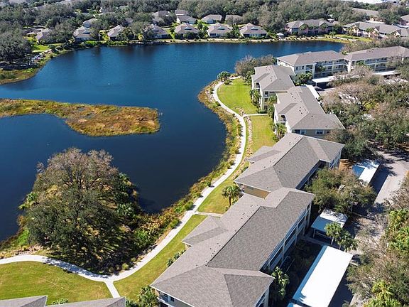 Enjoy stunning lake views from this rarely available 3-bedroom, 2-bath second-floor condo in the sought-after gated community of Heritage Oak Park! Sold turnkey furnished, this condo has been meticulously maintained and used only seasonally by the current owners—it's truly move-in ready. Upon entering, you'll find a storm door for natural light, a tiled foyer, and a convenient coat/storage closet. The open floor plan features a spacious great room and dining area that flow into the kitchen. As an end unit, it boasts extra side windows, making the space even brighter. The kitchen includes tile floors, raised panel cabinets with crown molding, hard surface countertops with a drop-in sink, a pantry with pull-out drawers, additional pull-out drawers in the lower cabinets, and a cabinet with a bay of drawers. It comes fully equipped with Samsung stainless steel appliances. Sliding doors from the great room lead to a screened, tiled lanai—perfect for enjoying your morning coffee or an evening glass of wine. The master bedroom off the great room includes a large walk-in closet and a pocket door leading to the ensuite bathroom with dual sinks, tile floors, and a walk-in shower. A laundry room with a newer stack washer and dryer adds convenience. The split floor plan places the second bedroom near the second bath, while the third bedroom at the front is often used as a den or office. Additional features include a newer A/C-heat unit with thermostat and de-humidistat, ceiling fans throughout, window treatments, laminate flooring in the great room, dining area, and third bedroom, and carpet in the master and second bedrooms. New carports and a new roof were added in 2023. The building includes an elevator, and gas grills are available for residents. Heritage Oak Park offers a vibrant lifestyle with an activity's director planning numerous events. Surrounded by majestic oak trees, the community feels like a serene retreat while being conveniently close to shopping and dining. Amenities include a large clubhouse, heated pool, tennis courts, pickleball, bocce ball, shuffleboard, horseshoes, fitness room, billiards room, lending library, & walking path around the lake, making this the perfect place to call home.