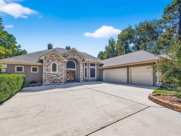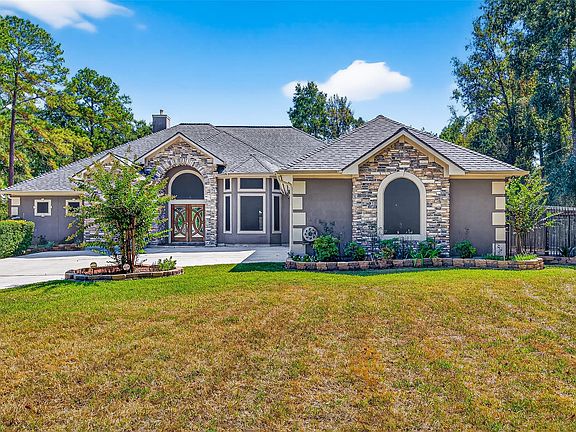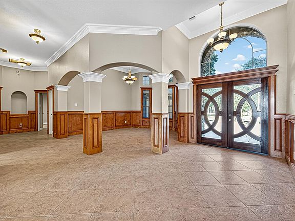 Discover luxury country living in this stunning single-story estate on a peaceful 66-acre lake, located in a deed-restricted acreage community with 1–5 acre tracts. This 4-bedroom, 3-bathroom home is steps from the community park with pavilions and a playground. Inside, tray ceilings enhance the main living areas and spacious primary suite, while a double-sided fireplace connects the family room and primary bedroom for added charm. The open-concept design flows into a large covered patio, leading to a sparkling pool—ideal for relaxing or entertaining with serene lake views. Car enthusiasts will love the fully insulated detached shop, featuring four bay doors, a professional-grade car lift, and a 50-gallon air compressor with full air tool plumbing. Whether you're into classic cars or need space for your projects, this home offers comfort, style, and exceptional functionality.