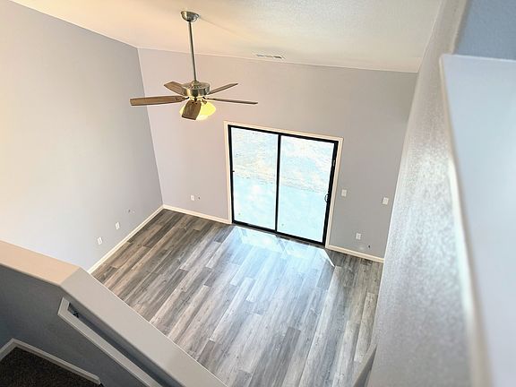 New island counterNew carpetExtra linen closetCustom grey colored cabinetsSpecious dining areaBrand new wood floorCeiling fan with lights