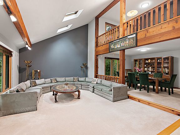 Welcome home to your inviting four-bedroom, two full and two half bath retreat in Lisle, situated on a serene 1.3-acre wooded lot surrounded by mature trees, lush landscaping, and beautiful gardens. As you arrive, a newly resealed horseshoe driveway welcomes you with ample parking for family and guests. The exterior charm continues inside, where an oversized foyer with a grand wood staircase and vaulted ceilings sets the tone for this spacious, light-filled home. The large living room is bright and airy with three skylights that feature remote-controlled blinds, allowing you to easily adjust the natural light. The living room flows seamlessly into the formal dining area, perfect for entertaining and family gatherings. Step into the kitchen, where you'll find abundant cabinet and counter space, a large pantry, and a sunny eating area with a beautiful view of the private backyard. The kitchen opens to the comfortable family room, ideal for unwinding after a long day. Completing the main level are a convenient laundry room and a half bath. Upstairs, the loft provides a flexible space that can be used as a home office, reading nook, or homework area. Three generous bedrooms share a full bath with a whirlpool tub and shower combo, while the primary suite offers a private balcony overlooking the front yard, a walk-in closet, and a bathroom with a double vanity and shower. The finished basement is designed for entertaining, featuring a wet bar, space for a pool or gaming table, a cozy TV area, a half bath, and a large storage area. Step outside to enjoy a tranquil and private backyard retreat with mature trees providing natural privacy. The deck is perfect for outdoor dining or morning coffee, and a shed adds convenience for gardening tools and equipment. Two separate two-car garages provide space for up to four vehicles and additional storage or workspace. This home has been meticulously cared for and thoughtfully updated, including a new roof and skylights completed in September 2025, fresh interior and exterior cedar painting, new light fixtures, updated bathroom countertops and faucets, driveway resealed in October 2025, and a refinished deck. Windows in the living room, dining room, and kitchen were replaced in 2023, and the kitchen and appliances were updated approximately ten years ago. The washer and dryer are five years old, the balcony doors in the primary suite were replaced ten years ago, and the HVAC system was updated about ten years ago as well. Taxes reflect both Homeowner and Senior Exemptions. This Lisle property offers the perfect blend of updates, timeless charm, and natural beauty-a peaceful retreat with space to entertain and relax. Don't delay, show today!!!!!
