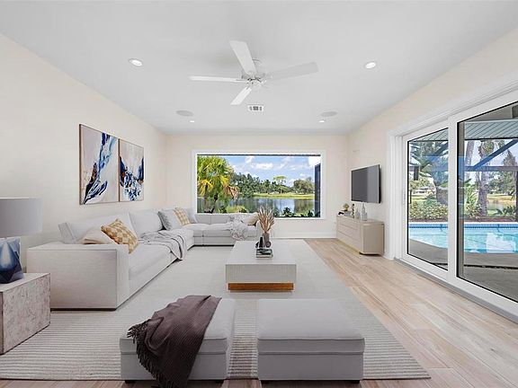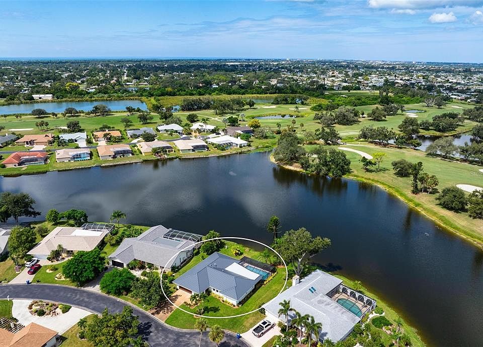 One or more photo(s) has been virtually staged. Set along one of the best water and golf views in Jacaranda West, this 3-bedroom, 2-bath pool home has been completely reinvented for modern Florida living. Wake up to egrets and herons at play across the lake, enjoy distant Gulf breezes, and soak in sunsets over lush fairways—all just minutes from downtown Venice, Gulf beaches, and I-75. The home itself lives like new, with nearly every system and finish replaced in 2024–2025, including a standing seam metal roof, PGT impact windows and doors, new kitchen, new baths, appliances, flooring tile, lighting, Clear View pool enclosure, pool equipment, and more. Smart-home conveniences, from climate control to lighting and security, add effortless comfort, while storm-rated features offer peace of mind. In a well-established neighborhood known for its central location and welcoming feel, this home blends timeless setting with modern luxury—an uncommon find in one of Venice’s most desirable communities.