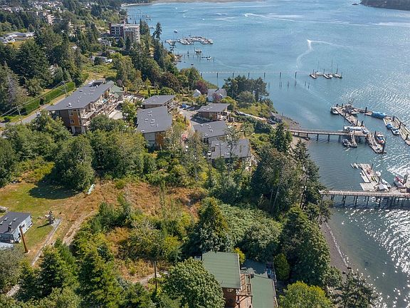 BUILDERS & DEVELOPERS ALERT! Rare opportunity to secure a waterfront lot in the heart of Sooke’s town core. This private .46-acre panhandle property offers approximately 70 feet of ocean frontage and is surrounded by newer high-end homes. The gently sloping terrain is perfectly suited for a rancher with a walkout basement or a two-storey design to capture sweeping views. A roughed-in switchback path provides convenient beach access. With sewer and municipal water at the lot line, this site is ready for your vision—whether it’s a custom dream home or a revenue-generating waterfront investment. Just steps to a waterfront park, boardwalk, local shops, restaurants, and transit, the location can’t be beat. Updated zoning under Bill 44 and SSMUH legislation allows for up to 4 units (buyers to verify directly with the District of Sooke). A spectacular development or lifestyle opportunity awaits!