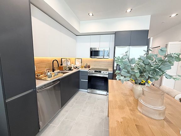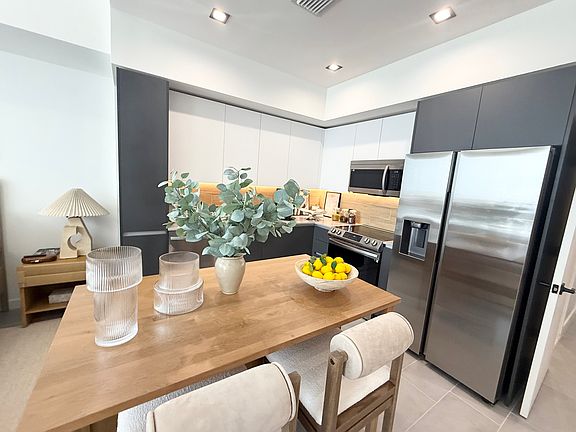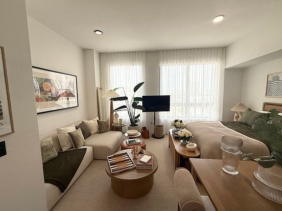 This modern space features a sleek kitchen, custom cabinetry, and warm lighting. The open layout includes a cozy bedroom nook, bright living area, and contemporary finishes throughout.