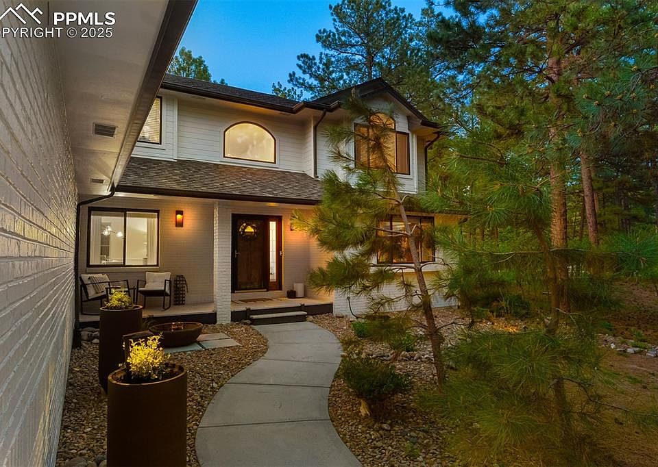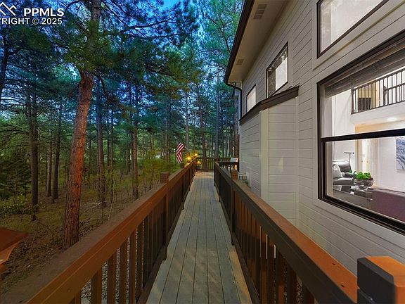 Some places just know how to slow things down. Not in a lazy way—more like an exhale. This two-acre property on a quiet cul-de-sac offers that rare kind of stillness, surrounded by towering pines and the steady rhythm of nature. Set in one of Larkspur’s most desirable neighborhoods, it’s a place where deer wander through the trees, wild turkeys cross the drive, and the occasional bear reminds you—you’re living in Colorado. The home makes the most of its setting, with a full-length deck, covered front porch, and multiple spaces to sit back and take it all in. This isn’t just outdoor living—it’s a front-row seat to the natural world. Inside, soaring ceilings, oversized windows, and warm finishes create a sense of ease and understated style. The main level offers a guest suite with deck access and a walk-in closet, a great room with statement fireplace, and a kitchen built for both cooking and connection. Upstairs, the primary retreat delivers treetop views and a peaceful place to land at the end of the day. And when it’s time to unwind or entertain, the finished lower level—with its wet bar, recreation room with a gas stove, and hidden gun room—has you covered. The oversized three-car garage offers high ceilings, built-in storage, and plenty of room for gear, tools, or weekend projects. With easy access to both Denver Metro and Colorado Springs, you’re never far from what you need—yet it still feels a world away.