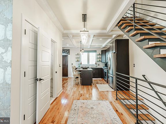 Exceptional opportunity in Point Breeze with Parking! Stunning designer corner property, boasting over 2300 sq. ft. of luxurious living space plus 1 car parking. This meticulously upgraded 4-bedroom, 3-full and 2-half bath home has a tax abatement remaining, making it an attractive investment. The first level welcomes you with an open floor plan that exudes elegance, highlighted by elongated Anderson windows, plantation shutters, high coffered ceilings, wall of wainscoting, gorgeous solid oak hardwood floors and a designer powder room. The living and dining areas flow seamlessly into a chef's dream kitchen, complete with 42-inch cabinetry, a marble countertop, and top-of-the-line Frigidaire Galley Series appliances, all bathed in natural light. The kitchen area leads to your own private parking space. Discover the elegance of this solid oak staircase leading to the second level, where two sunlit bedrooms await, each featuring custom electric blinds and ample closet space, including a walk-in. The spacious hall boasts a front-loading washer/dryer, storage, and a luxurious spa bath adorned with tile surround, marble flooring, and a stunning Carrara marble vanity. Ascend to the next level, where double doors reveal an expansive private master suite that occupies the entire floor. This generous bedroom is filled with natural light, complemented by walls of closets and a lavish marble bath, complete with a Jacuzzi soaking tub, walk-in shower with seamless glass, designer tile, and River Rock flooring, along with a double vanity and linen closet. The hall leads to a straight staircase that opens to a private roof deck, offering breathtaking sunrise and sunset views, along with unobstructed views of the entire Center City skyline. The lower level is fully finished, featuring two bonus rooms and a full bath, high ceilings, and extra storage, making it ideal for an in-law suite, home office, exercise room, playroom, den, or fourth bedroom. This fabulous home is a rare find, completely upgraded by its current owner with many custom upgrades and the finest choices. The next lucky owner will appreciate its beauty and functionality. Schedule a showing today to experience it for yourself!