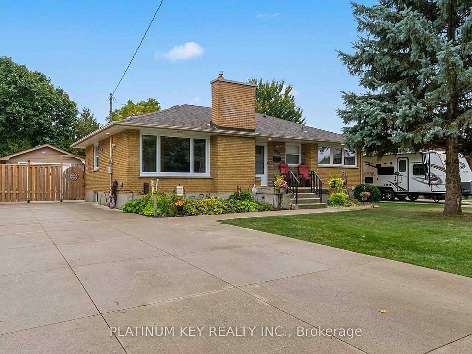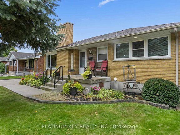 This charming all-brick bungalow offers the perfect blend of comfort, convenience, and pride of ownership in a desirable East London neighbourhood. Featuring 2+1 bedrooms and 2 bathrooms, this home welcomes you with a bright, spacious living room showcasing engineered hardwood floors and a large picture window open to the dining area. The clean, well-kept kitchen provides plenty of counter and cupboard space with ceramic tile flooring. A very large primary bedroom with double closets, a second spacious bedroom, and a four-piece bath complete the main level. The finished lower level adds exceptional living space with a huge rec room, laundry and storage areas, third bedroom, and a modern three-piece bath with a walk-in tiled shower. Outside, enjoy the expansive concrete patio running the length of the home, complete with a gazebo, fire pit, and storage shed in the fully fenced, private yard. Recent updates include Roof, Water Heater (owned) and some light fixtures and windows. Energy Audit was done and the insulation in the walls and roof was upgraded. The detached garage and long concrete driveway provide parking for up to five vehicles. Ideally located close to the Argyle Business Centre with its many shops, restaurants, and amenities, this home also offers quick access to public transit, the 401, Kiwanis Park, and nearby schools and churches, making it a wonderfully convenient and well-connected place to call home.