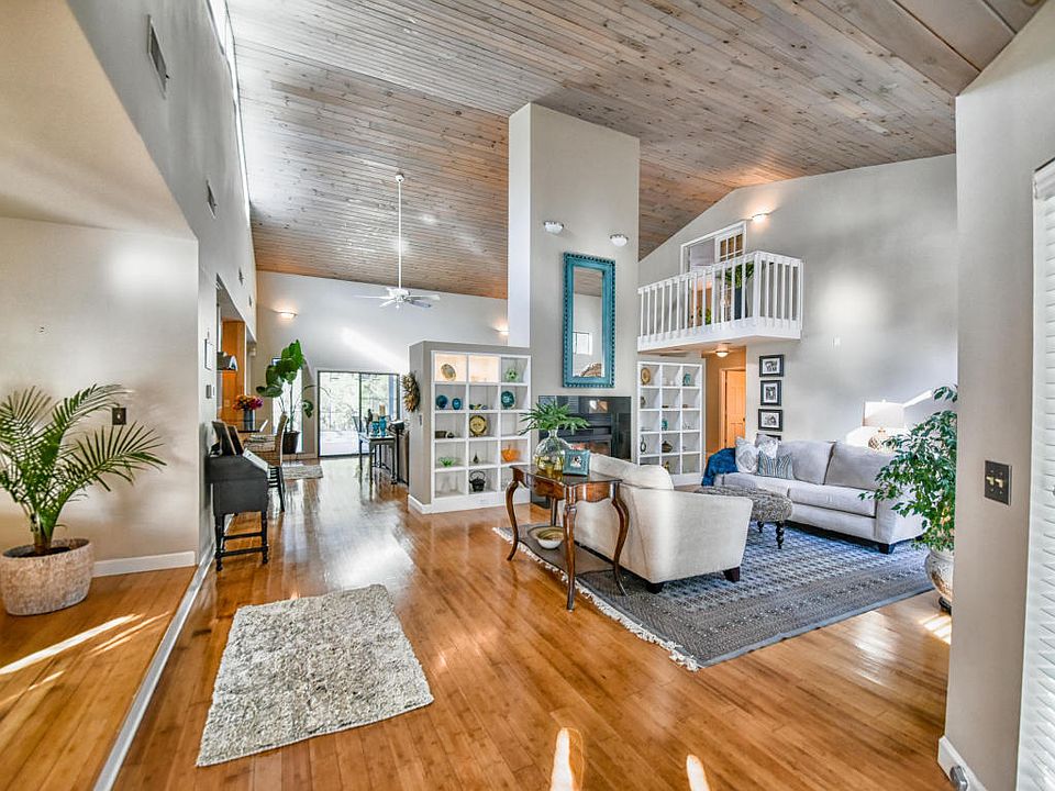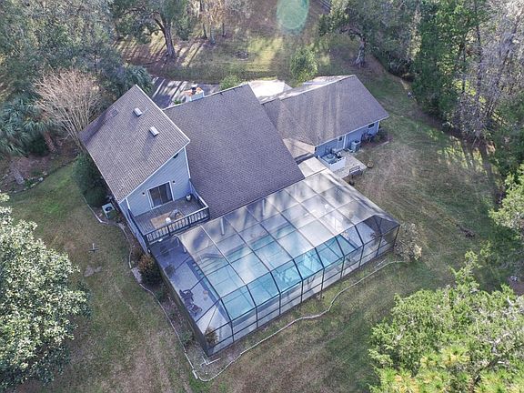 New photos coming soon ! An open floor plan right out of a magazine! Cozy sitting areas surround two sided fireplace,tongue & groove pine vaulted ceiling, quartz countertops & slate floors in kit., bamboo floors throughout, amazingly beautiful master suite, 3 car garage and screen enclosed outdoor salt/heated pool area for fun and entertaining all year long. Completely fenced with elec. gate and one of the most beautiful settings you ever laid eyes on! Completely remodeled Kitchen, master bath and office. New well, Roof and A/C along with new asphalt driveway all completed in 2022. Come see for yourself!