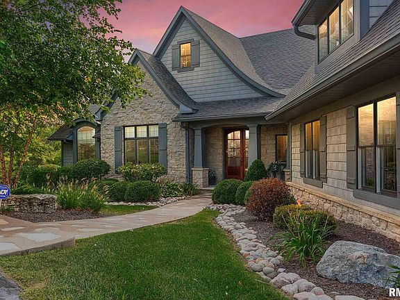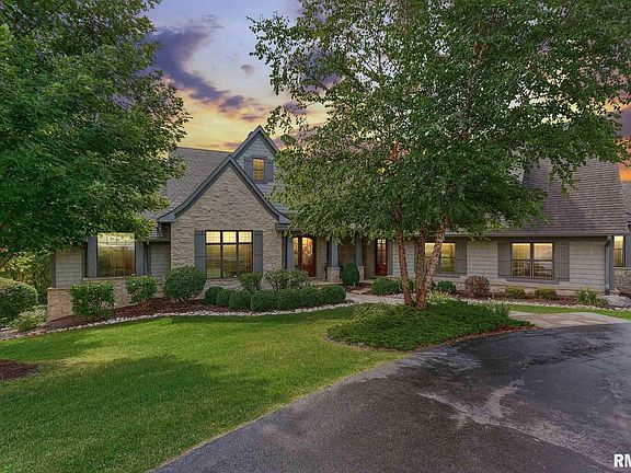 Perfectly positioned on 1.32 wooded acre in highly sought after Stoney Creek North w/ cart path to DCC! Stunning detail w/ unmatched craftsmanship this RANCH ESTATE boasts over 5800 Fin Sq. Ft! Step into the foyer & you'll notice a "showpiece curved staircase" as you enjoy panoramic nature views from wall of windows in Great Rm, featuring 14" barrel ceiling & stunning stone fireplace w/ custom mantel! Formal DR w/ double crown tray ceiling! Unique Hearth Rm w/ "etched car siding style" vaulted ceiling features Butler's Pantry w/ granite top! Top of line gourmet Kitchen w/ 18" cathedral beam ceiling, 48" Wolf gas/range oven & warming drawer, & Sub Zero fridge! Rustic cherry wood floors! Serene Master Suite w/ limestone shower & htd limestone floors, & Screened Porch! Walk-out LL w/ coffer ceilings, Theater Rm, Billiard Rm, amazing custom Bar w/500+ wine cellar! Flagstone 4 Seasons Rm, patio & fire-pit! Oversized att 2 car htd gar & 2 car htd Carriage house, w/ studio! Low County Taxes!
