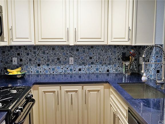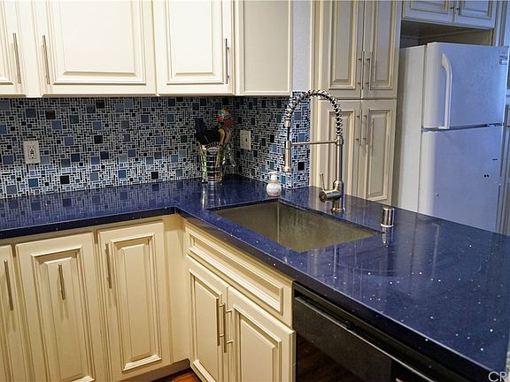 Sherman Court Condominium complex. A quiet inside location within the complex. Unit has high ceilings, recessed lighting and laminate floors throughout. The gorgeous remodeled kitchen features new cabinets, cobalt blue quartz countertops, and stunning tiled backsplash. The living room has a gas fireplace, and patio that overlooks the courtyard. Master bedroom is en-suite and second bedroom with access to patio. Stacked washer and dryer are included. Two tandem parking spaces in the subterranean garage and a storage cage, plus guest parking. Complex has new front elevator, new roof and fire alarm (2019), and new solar boiler (2018). Complex amenities include a pool and spa, recreation room, gym, and sauna. Close proximity to Warner Center, The Village, public transportation, and more.