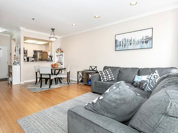 Gorgeous one level condo located on 2nd floor at desirable Sherman Court. Light and bright home features bamboo flooring throughout, recessed lighting, crown molding, updated full baths and in-unit washer/dryer. Breakfast bar opens to living room with beautiful gas fireplace and balcony. Master bedroom has updated ensuite bath. Storage closet in parking garage with 2 side-by-side parking spaces close to elevator! Security building with pool, spa, sauna, gym and guest parking.