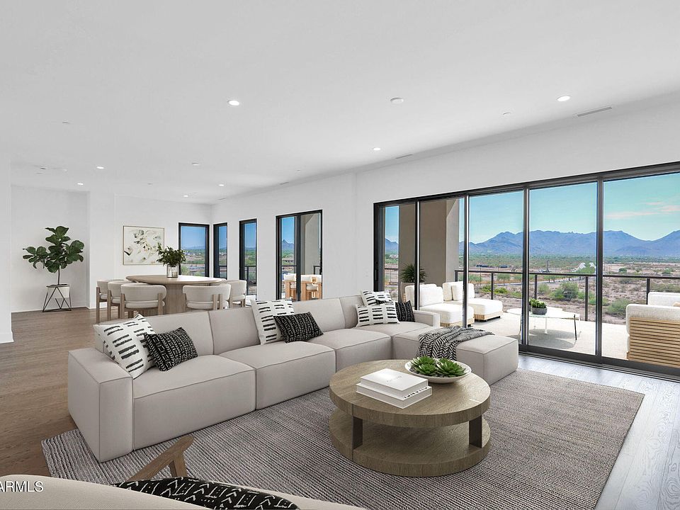 Be the first to tour Residence 5014, a stunning 3-bedroom, 3.5-bath top-floor home offering 2,768 square feet of thoughtfully designed living space. This is the largest floor plan at Portico, opening onto a 39' x 13' terrace for a seamless indoor-outdoor living experience. The home is complete with luxury upgrades and finishes, including a chef's kitchen with Italian cabinetry, full-height backsplash, built-in pantry, Sub-Zero/Wolf/Bosch appliances, and an expansive waterfall island. Enjoy spacious bedrooms, each with a beautifully appointed en-suite bath, and a powder room for guests. The primary suite is a private retreat, boasting its own terrace, a spa-inspired bath with freestanding tub, and a generous walk-in closet. The residence also includes a developer warranty and two indoor garage parking spaces. Located in North Scottsdale's new luxury corridor at Loop 101 and Scottsdale Road, Portico is a private gated community offering resort-style amenities, including a clubhouse, pool, state-of-the-art fitness center, and more.
