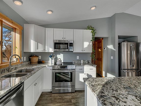Beautiful, sun filled 3BR, 2BA home. Extensively remodeled and updated throughout. Large corner lot with deeded access to Two Rivers Lake and mature trees overlooking a nature filled wetland area. Heated and insulated garage. Relax on the covered deck overlooking the lake, or next to the wood burning fireplace.