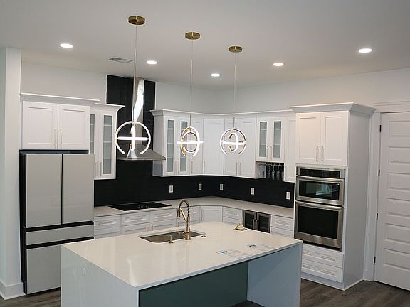 Low-maintenance turfCustom designed cabinetsLuxury vertical vinyl plankLuxury kitchenOpen-concept designModern master bathroomClassy master closet