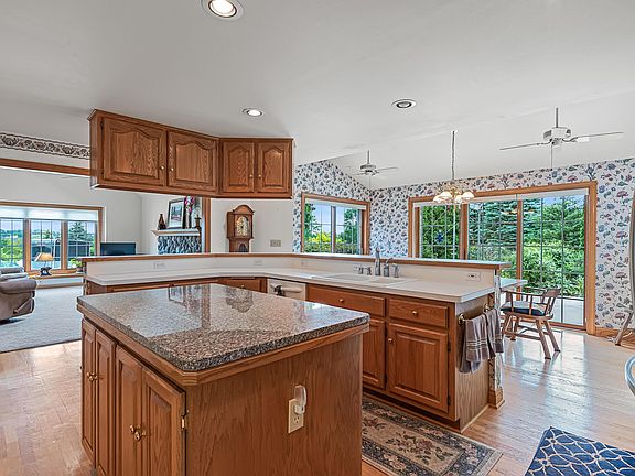 Fabulous 2 story Colonial home with amazing views located on 1.7 acres! This Westbridge built home offers open concept kit w/hardwood flrs, center granite island, snack bar, & dinette. Family rm w/fieldstone fireplace & skylights. Dining rm w/French doors off kit. opens to spacious size living rm. Master suite, w/walk-in closet, private bath, tile & jacuzzi tub. 6-panel doors throughout. 1st for laundry rm. Over-sized patio for all your family gatherings. Heated garage w/epoxy flr. Updates include, new upper level, living & dining rm carpet (June '21), Newly painted exterior & family rm (June '21), furnace & water softener (Dec '20), Central Air (July '19). Many more updates! See sellers property information in the document tab. Home is located close to schools, shopping & Hwy 41/45