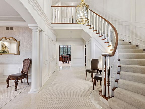 This custom all-brick and stone estate offers a entertainer's kitchen that opens to the family room and informal dining, while walls of glass showcase serene wooded views. The main-floor primary suite features dual baths, a sunroom, and expansive walk-in closet. Thoughtful design includes in-floor heating, soaring ceilings, and exquisite millwork throughout. The upper level features two large bedrooms and a shared full bath. The lower level offers two bedrooms, entertaining spaces, sauna, fitness room, and a special surprise. Outdoors, enjoy a fenced yard, mature trees, and private landscaped grounds—all just minutes from both downtowns and the airport.