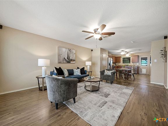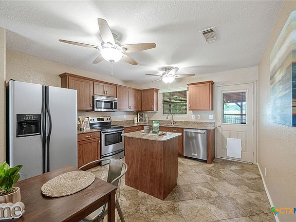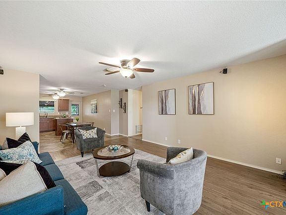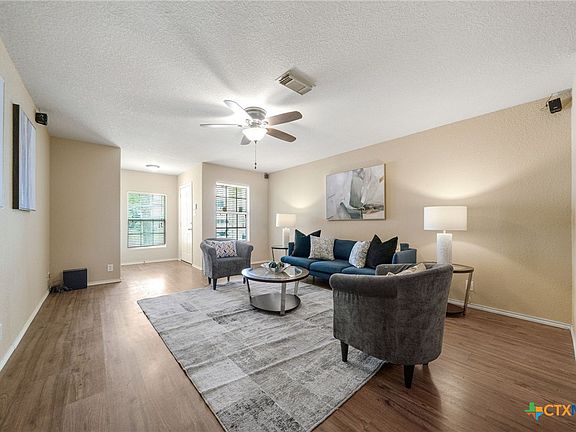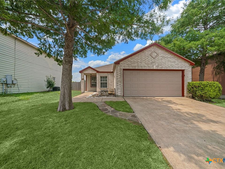 Welcome to this charming home nestled on a tranquil cul-de-sac in the desirable New Braunfels community! Bordering a scenic green belt and jogging trails, this beautifully maintained residence offers modern upgrades and an array of inviting features. Step inside to an open floor plan that effortlessly blends style and functionality. The heart of the home is the kitchen, featuring a large island, granite countertops, and stainless steel appliances. Perfect for both everyday meals and entertaining, the eat-in kitchen provides ample space for gatherings. The interior boasts double vanities and tile surround bathtubs, enhancing the elegance and comfort of the bathrooms. Enjoy outdoor living on the extended patio decking, ideal for relaxation and entertaining. The private backyard provides a serene setting for outdoor activities. This home combines modern convenience with natural beauty, offering a peaceful retreat with easy access to community amenities. Don't miss the opportunity to make this charming house your new home!