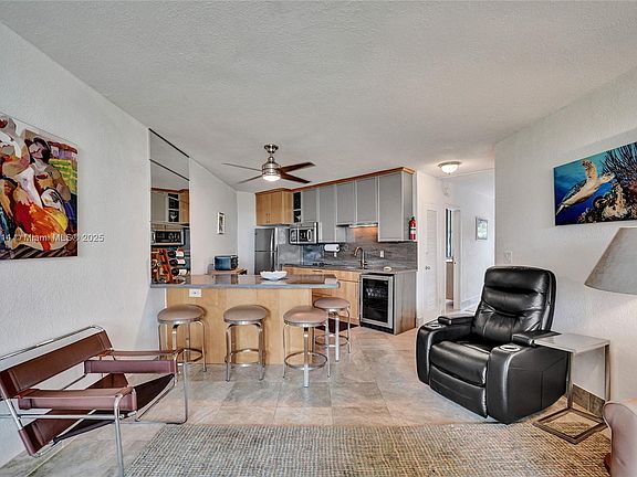 LOCATION: Just step out your front door and sink your toes in the sand. Enjoy morning coffee at the pool, enjoying beautiful Sunsets & Sunrise views. This impeccably undated Unit features 2 bright/spacious bedrooms & 1.5 updated bathrooms, step in shower. Large Open recently updated concept kitchen features SS appliances. Beautiful porcelain tile throughout, Marble Island & Countertop Impact Windows & front Door & Accordion shutters. Bldg has passed 40/50/60 yr inspections. Low HOA. No current assessments. Unit is located on the 1st floor with parking spot right in front of the unit. Common Laundry on 1st floor. Heated Pool. Rent 1x lifetime. No pets. Publix right up the street, Close to Gulfstream Racetrack, Casinos, Ft Lauderdale Airport Fully furnished. Updated electric & plumbing