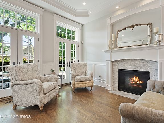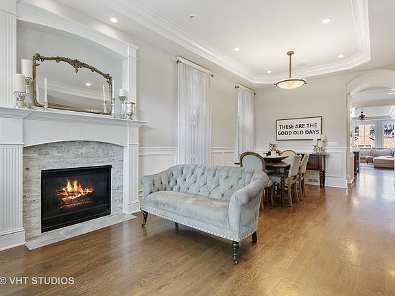 Stunning, all brick 5 bed, 3.1 bath single family home with three outdoor spaces in a desirable Lakeview location! The main level offers an inviting foyer and spacious living/dining room with a fireplace, custom crown molding, wainscoting and window treatments, and cove ceilings. The chef's kitchen boasts 54" cabinets, 48" Wolf range, Sub-Zero refrigerator, breakfast bar, a large island with room for stools and an eat-in area. A built in desk creates the perfect work space and offers additional storage. Relax in the large family room with a second fireplace and loads of room to entertain. Easy access to the back yard featuring a stone patio with a fireplace and space for a grill and outdoor furniture. The second level features an impressive master suite with a large walk in closet and spa-like master bath with heated floors, steam shower, double vanities, commode room, and abundant storage. Two additional bedrooms and side by side laundry on the second floor. The lower level is the perfect place to relax, offering a huge rec room with heated floors, a wet bar and another fireplace. Fourth and fifth bedroom, full bathroom and sizable laundry room complete the lower level. The outdoor space is unbeatable! In addition to the main level patio, this home offers a HUGE private roofdeck with interior access and a wet bar as well as a 19 x 18 deck with pergola over the 2 car heated garage! Zoned HVAC, professionally organized closets, and smart locks throughout. Quiet street close to Hamlin Park and everything Roscoe Village has to offer. Jahn School!