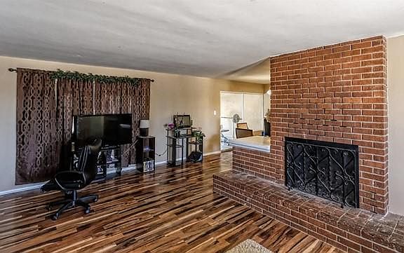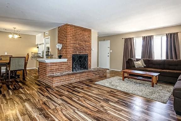 Nice, updated, big 4 bed 3 bath corner home on a big lot in sought after area of Apple Valley near schools, churches, hospital, medical offices and shopping. This split floorplan offers a master suite with 4 closets and another bedroom that is ensuite. There is nice updated laminate flooring throughout common areas. The kitchen has been updated with beautiful granite countertops, mosaic backsplash, stainless appliances and freshly painted cabinets. The living room and dining room wrap around a big homey fireplace and hearth. There is an enclosed back patio that is great for entertaining, game room or just storage. There is a circular driveway and the garage is a 2 car, detached that has a secondary driveway and attached carport. The back yard is fully fenced. The home is connected to sewer.