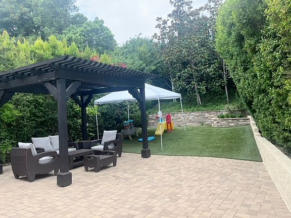 DREAM RENTAL FOR A YOUNG FAMILY. Upgraded and well-maintained stunning family-friendly home in Porter Ranch Estates 24-hour guarded/gated community. Home is within the award-winning schools district lines- Castlebay Lane Charter Elementary, Frost Middle School, and Chatsworth and/or Granada Hills High School. This home is on a cul-de-sac and in close proximity to community facilities (included in rental agreement)-- Walking distance to two pools, heated jacuzzi, tennis courts, basketball courts, volleyball courts, playground, open grass area and more. Downstairs you will find the light and bright kitchen, which has granite countertops, travertine flooring, Jenn-Air stainless steel appliances, slow close drawers, and ample storage space. The living room has a gas fireplace with remote, pre-wired connections perfect for a wall-mounted tv, and an under-the-staircase playroom (can be used as a closet/storage if preferred). The laundry room has storage and is conveniently located within the home. The half bath powder room downstairs is perfect for guests too. The direct access finished garage has plenty of built in storage, carpet, and a window with shutters (so can be used as a multipurpose 5th room, extra office, play-space, or as a work out space ). The staircase is lit up by a sky light, which provides beautiful natural light to the whole upstairs. Additionally, there are 4 bedrooms and 2 bathrooms on the second level. (rare for the model within the community!). The master bedroom has a bay window, attached bathroom with soaker tub, dual sinks, and a huge walk in closet. The other three bedrooms have thoughtfully updated closets as well-- truly, there is no shortage of storage space in this home! The showstopper backyard has artificial grass, updated pavers, newly stained pergola with lighting, and has room for the whole family. The yard is lined with large trees for privacy and a wonderful gathering place for friends and family. Gardener is included and paid for by owners. More upgrades include crown molding, plush carpeting upstairs, dual-paned Milgard windows, overhead can lights retrofitted with warm glow inert efficient LED lights, pre-wired for alarm system, newer solid wood front doors (with windows for more light), Nest AC controls, and more! 12-month+ lease options available now. Small pets welcomed with additional pet deposit. (Sorry, no cats). Note: Please do not solicit/spam with a renting agency or AirBnB offerings Owner pays for gardening/HOA fees. Renter pays for all other utilities. Open to 12-month and longer term lease options only. Not interested in working with leasing agencies.