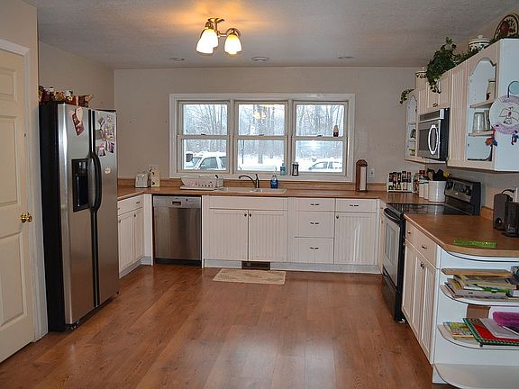 WHAT A GREAT LOCATION! JUST OUT OF TOWN ON 4.3 ACRES. Home was built in 2003. 5 Bedrooms and 2 baths with large open floor plan. Walk out basement with 2 bedrooms and a family room 2 Stall detached garage with workshop area.