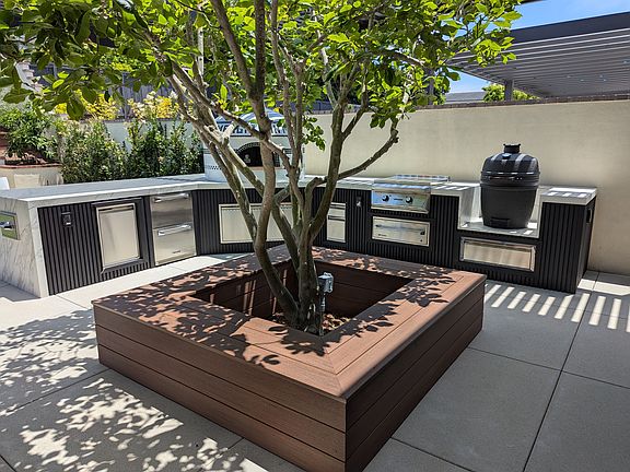 Custom Forno Bravo pizza oven, Twin Eagles griddle, egg smoker, pellet smoker