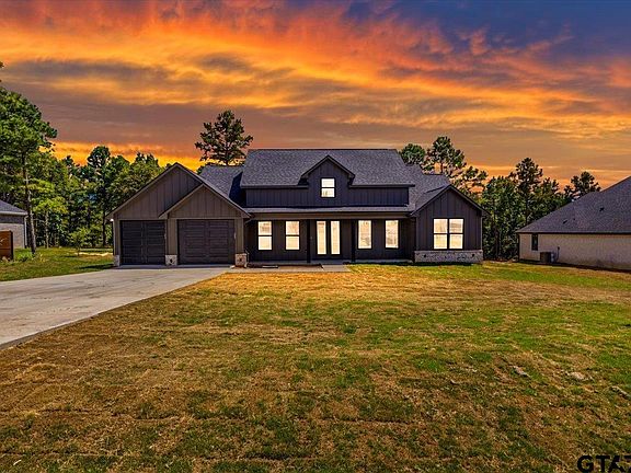 Step into style and comfort in this beautifully built new construction home in charming Lindale, TX. This thoughtfully designed 4-bedroom, 2.5-bath residence offers a spacious layout with modern finishes and a functional floorplan that suits every lifestyle. The open-concept living space flows seamlessly into a designer kitchen featuring sleek cabinetry, stainless steel appliances, and a generous island—perfect for hosting friends or enjoying everyday meals. Large windows bring in natural light throughout the home, highlighting the quality craftsmanship and attention to detail. The primary suite offers a walk-in closet and a luxurious en-suite bathroom with dual sinks and a custom-tiled shower. Three additional bedrooms provide flexible space for family, guests, or even a home office. With a two-car garage, covered back porch, this home checks all the boxes. Located in a growing community within the highly-rated Lindale ISD, you'll enjoy the perfect balance of quiet living and convenience. Don’t miss your chance to own a brand-new home in one of East Texas’ most desirable areas!