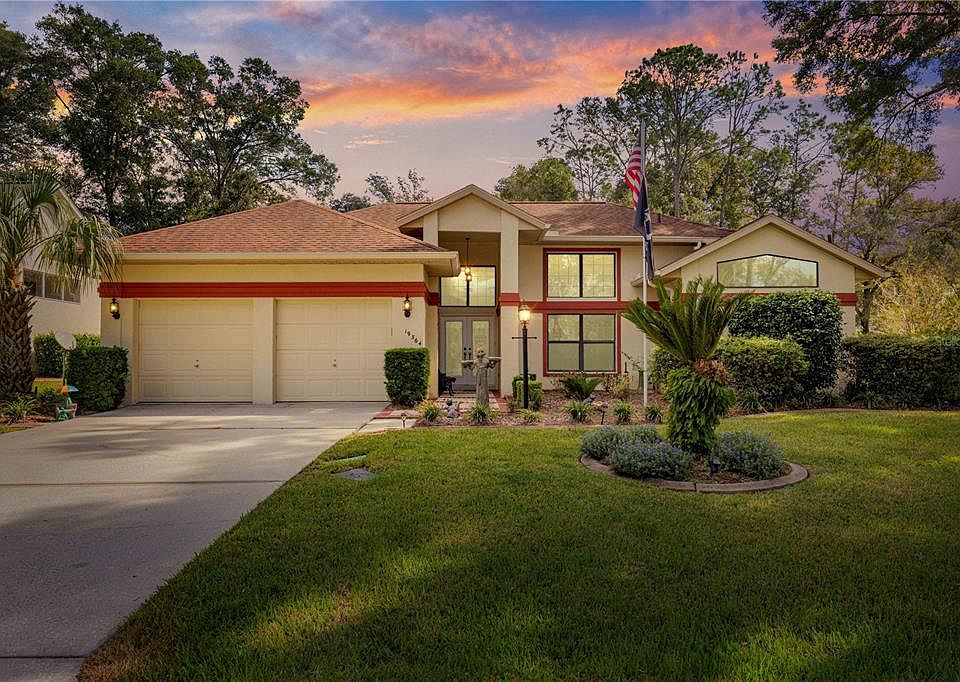 Discover this stunning pool home nestled in the picturesque Rainbow Springs Country Club, offering exclusive access to the beautiful Rainbow River, a private park, and a serene private beach. The property showcases a park-like ambiance with an inviting entrance that sets the tone. Inside, you'll find elegant traditional Saltillo tile flooring in the living room, dining room, foyer, kitchen, and guest bath. The primary bedroom and bathroom feature tile, with the guest bedrooms boasting new carpeting. The spacious living room is bathed in natural light thanks to its high ceilings and ample windows, creating a warm and welcoming atmosphere. The updated kitchen is a chef’s dream, equipped with new cabinets featuring soft-close doors and drawers, along with sliding cabinet drawers for effortless storage. Beautiful quartz countertops add a touch of elegance, and you’ll appreciate the modern appliances, including a stove, microwave, and refrigerator updated in 2017, and a dishwasher from 2021.The formal dining room offers generous space under a stunning chandelier, perfect for dining and entertaining. The primary bedroom is inviting and roomy, with tile flooring and a sizable walk-in closet. Enjoy easy access to the covered pool deck through sliding doors. The expansive primary bath features two separate vanities with quartz countertops, a relaxing garden tub, and a large walk-in shower complete with a built-in bench and updated glass door. Both guest bedrooms are bright and spacious, featuring large windows for plenty of natural light and built-in closets. The guest bath has a modern touch with a stylish vanity with an updated quartz countertop, and contemporary glass doors. The laundry room provides ample storage, extra shelving, a laundry tub, and nearly new washer and dryer. The pool and spa have been recently refinished, and have been converted to a saltwater system, allowing for pleasant dips year-round thanks to an electric water heater. Enhancements around the exterior include poured curbing for the front yard landscaping, gutters, and a new water softener. The garage floor has been resurfaced for a fresh look. Further updates include a roof replacement in 2015, HVAC system in 2016, water heater in 2021, and an updated breaker panel box in 2018. The home comes complete with televisions in the primary and guest bedroom, a cozy fireplace in the living room, and even a generator equipped with an interlock system, ensuring peace of mind. This is more than just a home; it’s a lifestyle waiting for you!
