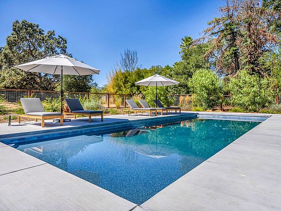 Outside, a private swimming pool beckons, offering a serene setting for swimming, sunbathing, or enjoying alfresco meals under the Sonoma sky.