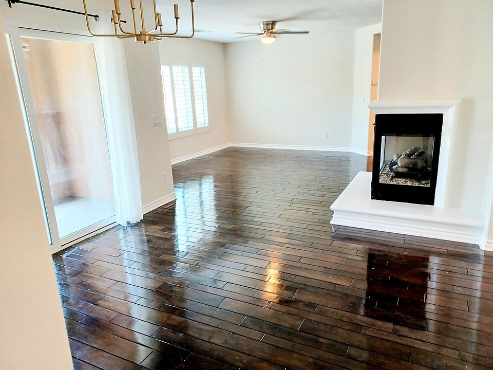 Beautiful and spacious 2 Bedroom 2 bathroom condominium in the wonderful Mariposa community of Saugus. This home is light and bright with hardwood floors, plantation shutters, a fireplace in the living room, updated kitchen with granite counters and stainless steel appliances. The unit was recently painted and the carpets in the bedrooms have just been cleaned. There is a laundry room downstairs next to the attached single garage. An additional designated parking space comes with this unit. The community has a pool and a small park. There is a new shopping center across the street with a Starbucks and a grocery store. Small dogs will be considered. No smoking allowed in the unit or balcony. Tenant to pay for, electricity, gas, water and water softener. Owner will pay HOA dues that cover trash and amenities such as pool.