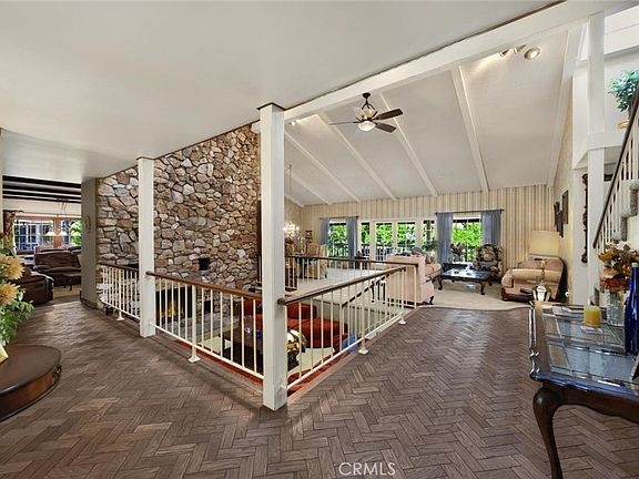 Striking fireplaceBrick wine cellarOversized kitchenSpacious patioPrivate deck accessSoaring ceilingsOpen floor plan