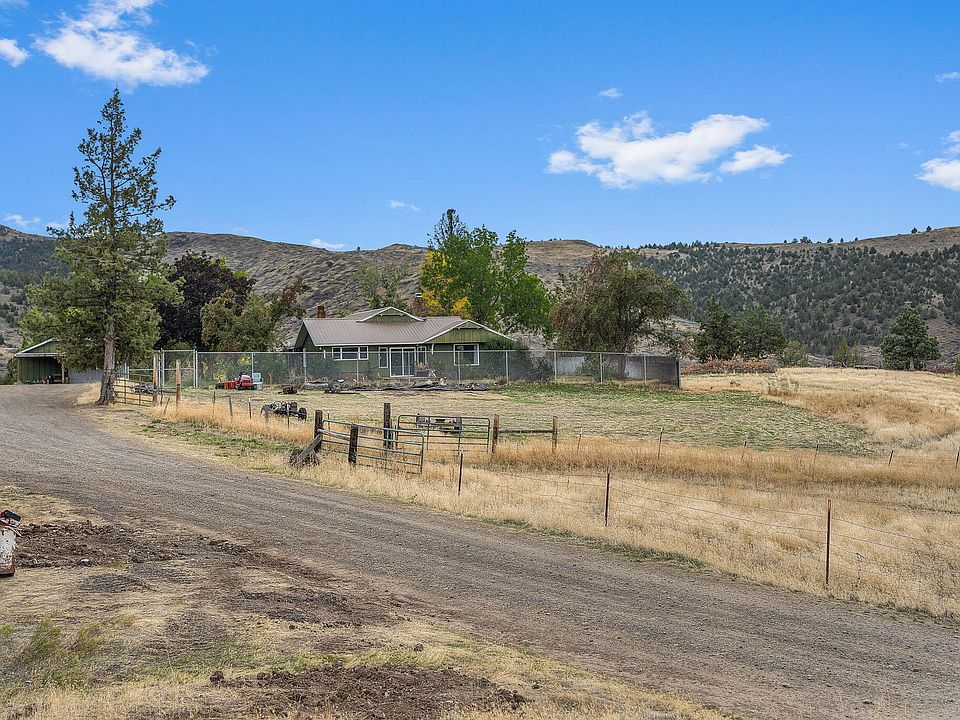 Rare opportunity to own 82+ acres in Mitchell, Oregon! This versatile property includes 35 acres of water rights, is fully fenced and cross fenced, and spans 3 separate tax parcels. You'll find a rustic but functional barn, multiple shops, machine sheds, and hay storage- everything you'll need for livestock, farming, or equipment. The main home sits proudly on a hilltop, offering sweeping panoramic views from every window. Inside, you'll find 3 bedrooms, 2 bathrooms, a large open floorplan, multiple bonus rooms, and 3 heating/cooling sources: woodstove, oil monitor, and full HVAC with A/C. Bonus: a second home on the property with its own well, meter, and septic- ideal for multi-generational living, guest quarters, or rental income. Just minutes from downtown Mitchell and the Painted Hills, this property is perfect for those seeking wide open space, privacy and potential. Professional photos coming soon.