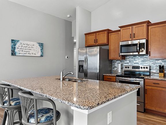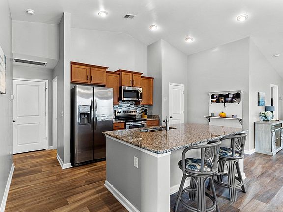 - Features: Breakfast Bar, Kitchen Island, Pantry, Stainless Steel Appliances, Solid Surface Counters