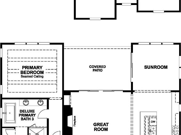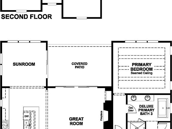 The main level boasts a thoughtfully designed open floor plan, highlighted by a spacious great room with a beamed ceiling and a cozy fireplace. The gourmet kitchen is a chef’s delight, complete with a large center island, walk-in pantry, butler’s pantry, and adjacent nook that opens to a covered patio is perfect for seamless indoor-outdoor living. A private study and a formal dining room with tray ceiling add to the home's functionality and sophistication.