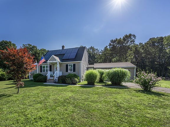 Welcome to this beautifully updated 4-bedroom Cape Cod-style home, set on 2.25 private acres of open and wooded land in a peaceful, natural setting. Enjoy a fenced-in yard, an above-ground pool area, and ample space for outdoor living and future possibilities. The main level features a warm, inviting living room that opens to a flexible dining area and a spacious rear family room with hardwood floors and expansive views of the backyard. The updated kitchen includes granite countertops, stainless steel appliances, a breakfast bar, and a built-in reverse osmosis water tap. A mudroom provides a convenient connection to the attached 2-car garage. Also on the first floor is the primary bedroom, which features a generous amount of closet space, located next to a renovated bathroom, providing the ultimate modern feel. An additional bedroom or home office is just off the living room. Upstairs, a full rear dormer adds two more bedrooms and an updated full bathroom with a deep soaking tub. The home was fully renovated in 2015, including the addition of a dormer, a new roof, windows, kitchen, and bathrooms. Since then, additional improvements include a new septic system and leach fields (2019), an electric water heater (2020), a well tank (2020), a well pump (2016), and Renewal by Andersen slider and windows. A recently installed 3-ton ductless mini split system provides efficient cooling and supplemental heating. The home is also equipped with Tesla solar panels and two battery backups, offering energy efficiency and backup power for added security and cost savings. According to the seller, the land may offer subdivision potential for an additional home at the rear of the property (buyer to perform their own due diligence). This is a move-in-ready property that blends comfort, updates, and long-term potential in a private, scenic location.