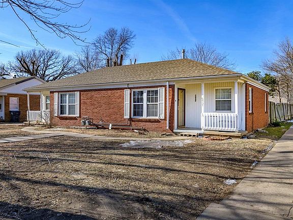 Enjoy the perfect blend of historic charm and modern comfort in this charming all-brick duplex located in the heart of Riverside. This update unit features 2 bedroom, 1 bath, large family room, new trim, paint, flooring, countertops and vinyl windows. The home offers a bright and inviting layout, a fenced backyard, and access to a shared two-car garage. Located in one of Wichita's most desirable neighborhoods, you'll love being close to parks, shops, and restaurants and schools while enjoying the quiet, tree-lined streets that make Riverside so special.