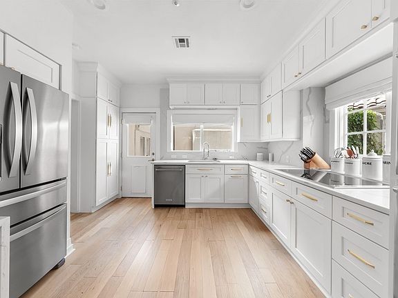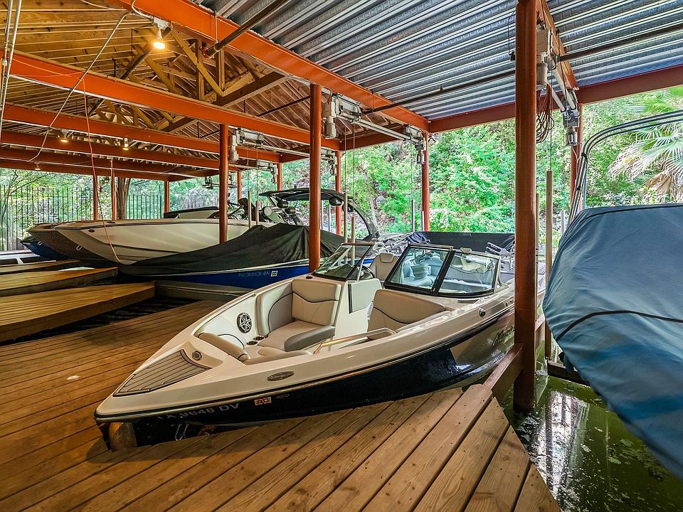 Step into refined luxury at this completely remodeled townhome in the private, gated Rue De St Tropez community on Lake Austin. This home has been thoughtfully reimagined with exquisite attention to detail and sophisticated finishes throughout. The chef’s kitchen features premium Thermador appliances, custom solid wood-core cabinetry, Restoration Hardware fixtures, and White Carrara marble countertops. Elegant custom crown moulding and wide-plank white French oak hardwood floors flow seamlessly throughout the home, complemented by a custom glass banister and designer wallpaper accents for a curated, modern aesthetic. The primary bath is finished in imported Italian marble, while the powder bath is enhanced with handmade Moroccan tile, adding unique character. Custom closets throughout include an LG steam closet appliance, while a private elevator provides an additional layer of convenience and accessibility. A rare boat dock lease on Lake Austin is secured through April (with possible extension), offering unmatched access in one of Austin’s most exclusive waterfront enclaves. Combining modern elegance with a true lock-and-leave lifestyle, this home is further enhanced by community resort-style amenities including a pool, pickleball courts, and basketball facilities—all just minutes from downtown Austin.