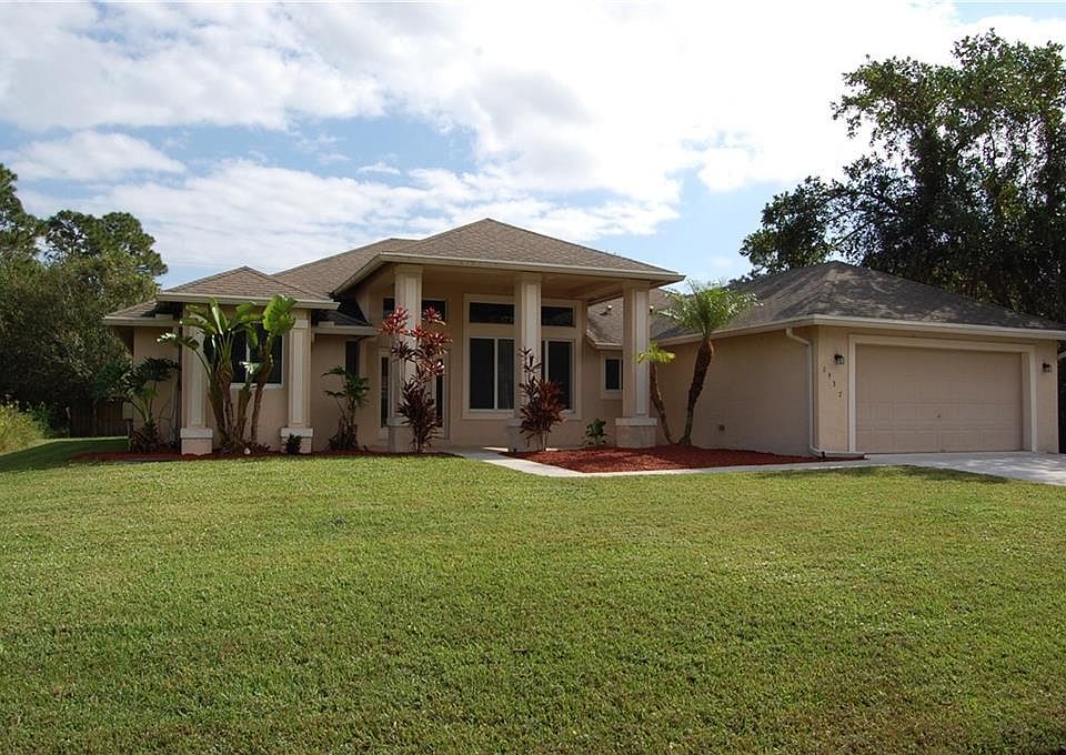 Custom home! Must see beautiful 3 bedroom/ 2.5 bath/ 2 car garage home CBS constructed home in Port Saint Lucie. Vaulted and high volume ceilings throughout the home with rounded corners, french doors out to your large screened patio, 42 inch cabinets, granite, and stainless steel appliances in the kitchen! You will not be disappointed with this home! Room for a pool and A/C was replaced this month November 2017 before going on the market!