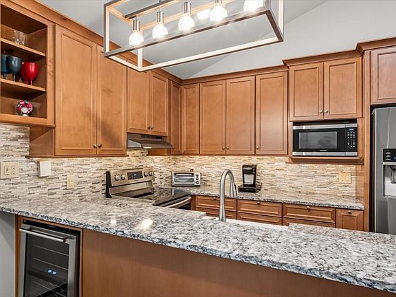 Cozy fireplacePrivate deckVaulted ceilingFarm sinkGranite countertopsUnder cabinet lightingTile flooring