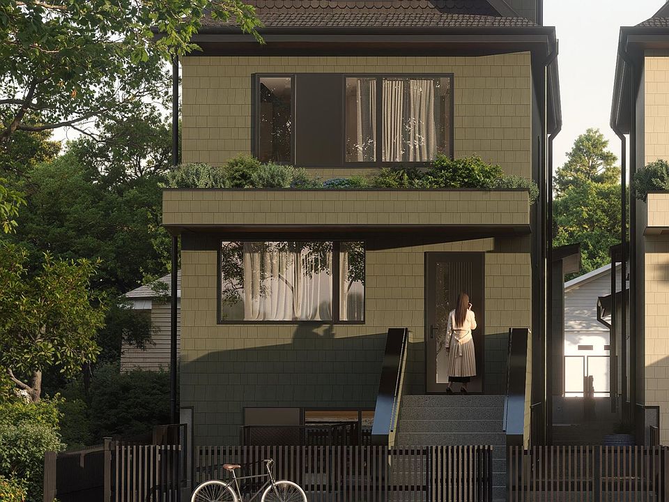 Welcome to Templeton Green! This modern home was designed by Architrix, built by renowned Fina Homes w/ curated interiors by Maria De Cotiis. The bright & spacious main floor has generous living & dining spaces, powder rm + a gourmet kitchen w/ integrated appliances, induction range, large island & massive sliders to the covered deck. Up has 2 bedrooms, 2 baths incl the primary suite w/ WIC & stylish ensuite. Up top has 2 more bedrooms + flex. The 2 bed, 1 bath garden unit is perfect for extended family or rental income & the separate title gives future resale flexibility. Net Zero means enhanced insulation, high performance windows, solar panels, zero-emission heating, HRV & more. Thoughtful living in The Drive, one of East Van's most community rich neighborhoods. A truly rare offering!
