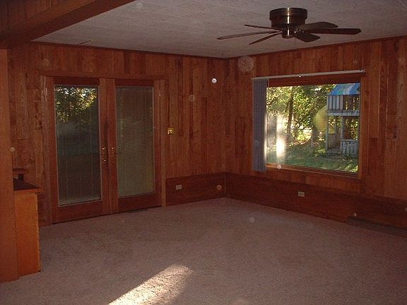 Spacious 1900+sq Brick Ranch on over an Acre of Wooded Property w/ Beautiful Views. GreatRoom w/walk-out to patio. Large Kit with abundant cabinet and counter space. Fridge, stove, oven, grill, and d/w included. Double-sided Stone fireplace in LR. Master BA has large tiled shower. Brand new carpet throughout, hardwood fl in DR, freshly painted inside and out. Potential for additional living space in basement w/ fireplace and plumbed for additional 1.5 BA. Priced over 50k below assessor FMV. Taxes reflect no exempt. Rm Sz and lot dim approx, buyer to verify all info. Sold As-Is.