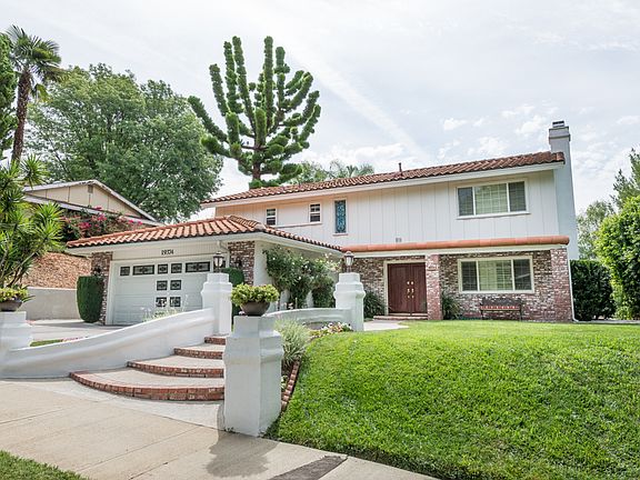 SPECTACULAR home located in a stunning, picturesque neighborhood of Porter Ranch! Priced for immediate sale! This 4 bedroom, 3 bath home features an impressive floor plan, including a formal living room w/ black marble fireplace, formal dining room with exposed dark wood beamed ceiling and separate family room with French doors leading to the patio. The light and bright contemporary kitchen offers granite countertops, custom cabinets and opens up to the kitchenette area, perfect for casual meals with the family. The second level includes an extraordinary master suite with ample room for a sitting area featuring his and her closets with custom built in shelves and elegant master bath with dual sinks, separate shower and soaking tub. Three additional nice-sized bedrooms are fitted with ceiling fans and plantation shutters. Private backyard includes a covered patio, sparkling pool and spa ideal for relaxing and entertaining guests. Other features include plantation shutters throughout, dual pane windows, recessed lighting and hardwood floors on the lower level. Also located in the highly desirable school district Beckford Elementary, Nobel Middle School, and Granada Charter. Welcome to your private retreat from the modern world!