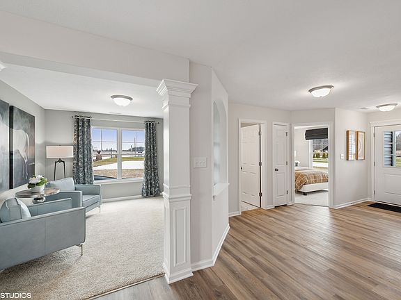 Olthof Homes presents the Brighton. Step into comfort and style with this beautifully designed 1532 sf paired villa featuring an open-concept layout perfect for entertaining and everyday living. This spacious 2-bedroom, 2-bathroom and flex room with architectural columns, home offers a seamless flow from the living room to the kitchen and dining areas, enhanced by abundant natural light. Enjoy peaceful evenings under your covered porch in your private backyard. Spacious layout combines comfort and style in a low-maintenance setting. Upgrades in the home: Maple Fallow Cabinets, Located on Private lot, Attached 2 Car Garage, Covered Porch, Gas Fireplace, Spacious Primary Bathroom with walk-in closet.