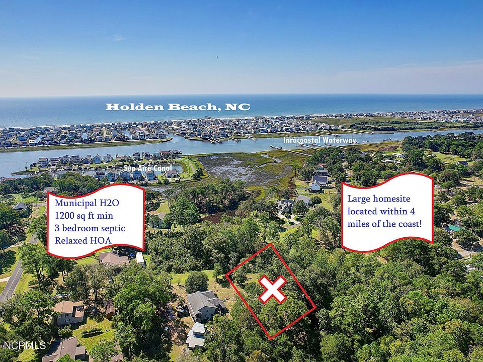Large parcel with septic tank in the ground! This .92 acre homesite is located in the Sea Aire Estates community, just 5 miles to the sandy shores of Holden Beach! Stick built homes with a minimum of 1200 square feet allowed. No time frame to build, you choose your builder! Access to municipal water and relaxed owners association that allows you to park your boat or camper! Don't miss the opportunity! Call today!
