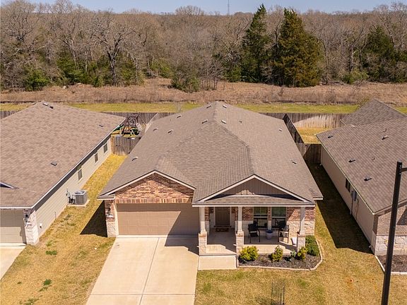 Located less than 15 minutes from Texas A&M University, the RELLIS Campus, and Blinn College, Pleasant Hill is an easy commute for students or anyone working on campus. This single owner home offers a nicely landscaped lot with a fully fenced backyard that backs up to the neighborhood greenbelt and trail system (no back neighbor). The open concept floor plan is light and bright and offers a spacious family room, large dining area, an island kitchen with eating bar, three bedrooms, two baths, an in-house utility room and a large separate study that works great as a second living area. Beautiful wood tone vinyl plank floors are throughout the entry, family room, dining room, kitchen, hallways and study. Tile floors are in both baths and the utility room. The spacious island kitchen offers granite counters, extensive cabinetry and stainless steel appliances including the side-by-side refrigerator. The split-bedroom plan allows for a private primary suite with a spacious bathroom offering two vanities, a garden tub, separate shower and large walk-in closet. The two other bedrooms also offer nice closets and direct access to the large hall bathroom. The in-house utility room offers ample storage and comes with the Samsung washer and dryer! Upgrades include a high impact resistant 40 years shingle roof that is less than four years old.